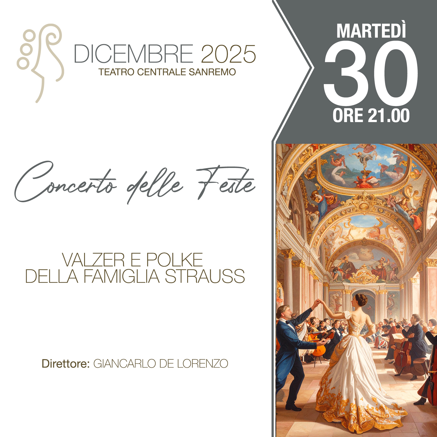 Dal 30-12-2025 al 30-12-2025 Concerto delle Feste VALZER E POLKE DELLA FAMIGLIA STRAUSS Direttore: GIANCARLO DE LORENZOo