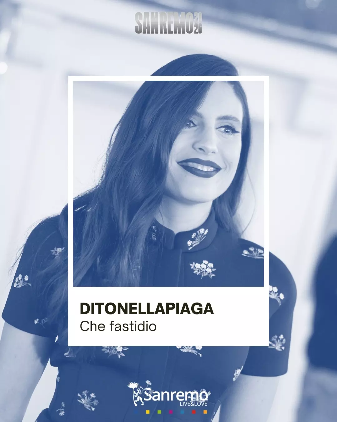 Per la sua partecipazione a Sanremo 2026, Ditonellapiaga propone “Che fastidio“. Le prime indiscrezioni parlano di un brano dal ritmo trascinante e dal testo sagace, in pieno stile Carducci. L’obiettivo è chiaro: confermare la propria maturità artistica e scalare le classifiche con quella freschezza che l’ha resa una delle voci più originali della sua generazione.