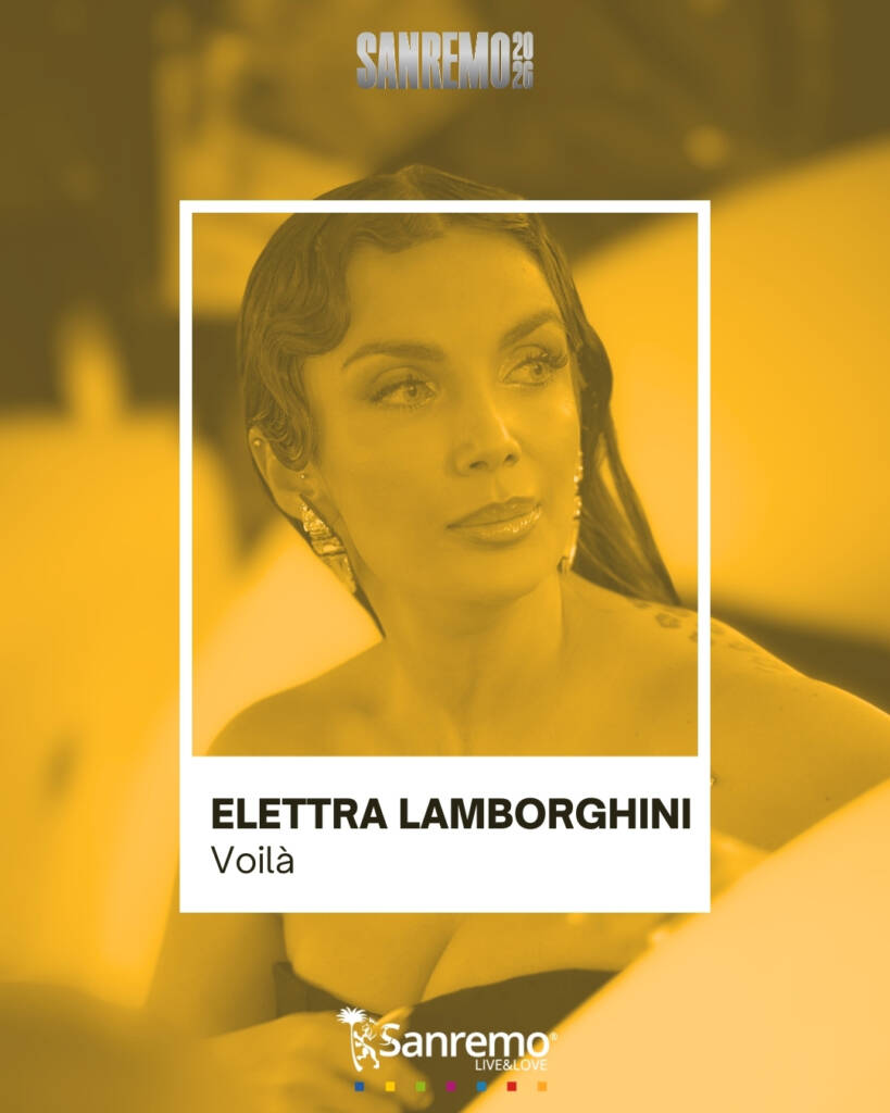 Elettra Lamborghini torna in gara al Festival di Sanremo 2026. Inserita tra i 30 Big di questa edizione, l’ereditiera più famosa d’Italia presenterà il brano “Voilà”. Sei anni dopo il successo di “Musica (e il resto scompare)“, Elettra è pronta a riprendersi la scena pop nazionale con la sua inconfondibile carica di energia e sensualità.