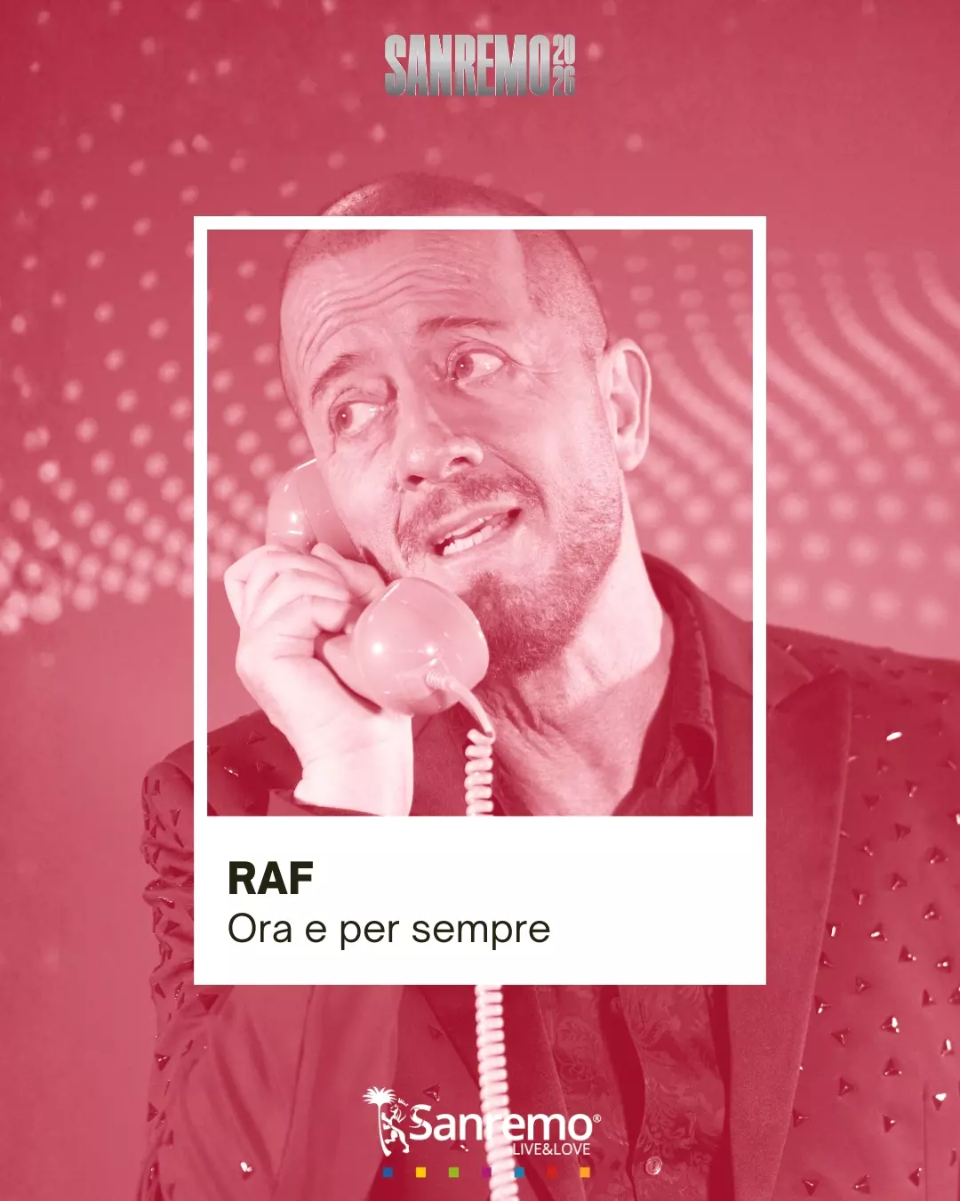Dopo il tour celebrativo per i 40 anni di “Self Control” e l’esperienza televisiva come coach a Ora o mai più, Raf torna a Sanremo con una ballata elettropop prodotta con suoni contemporanei ma dal cuore antico. “Ora e per sempre” sembra voler chiudere un cerchio: un brano che parla di tempo, di memoria e della capacità della musica di restare eterna, proprio come quel battito animale che non ha mai smesso di pulsare.