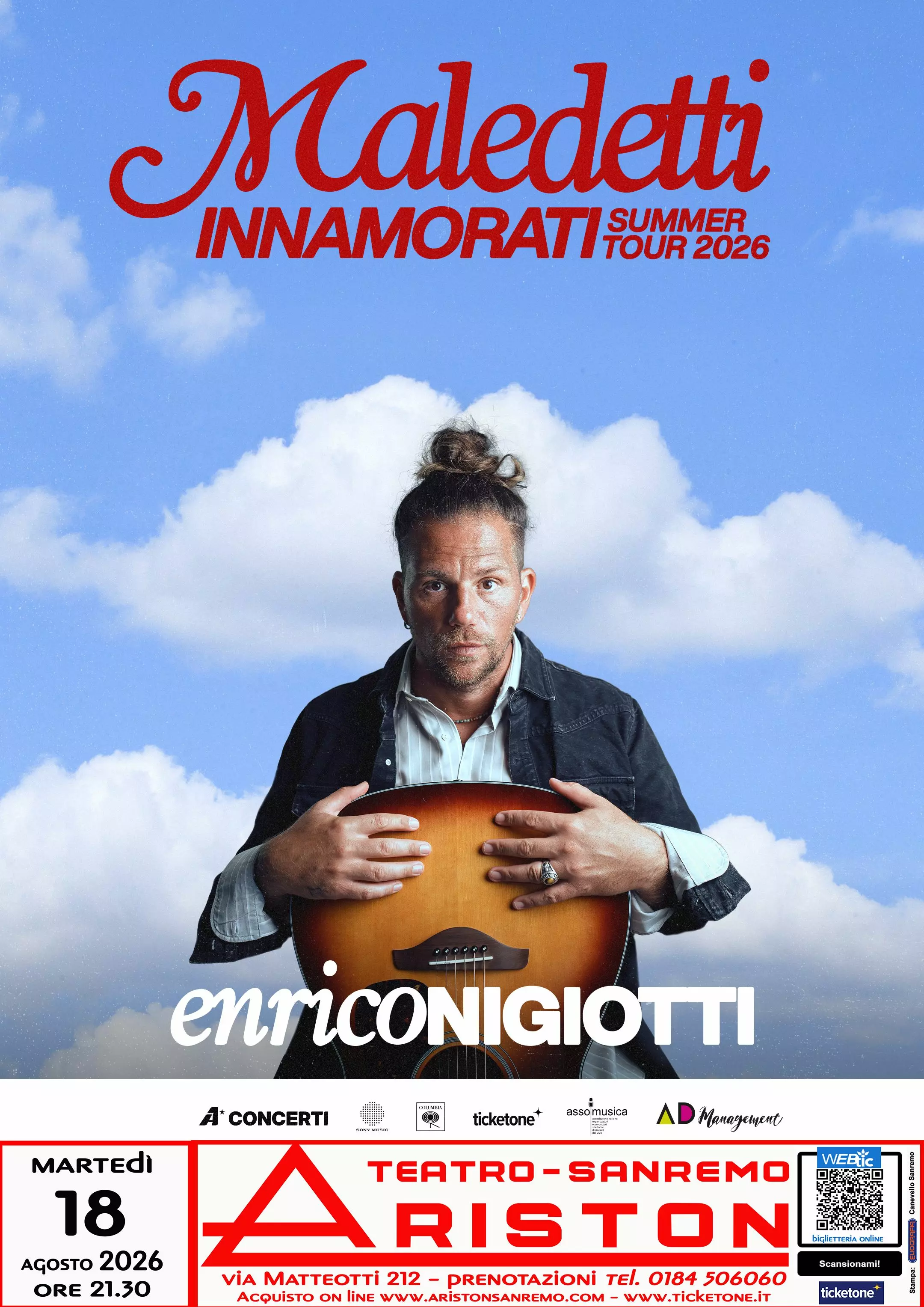 Enrico Nigiotti ritorna sui palchi con il “Maledetti Innamorati Summer Tour 2026”. Il tour estivo, organizzato da A1 Concerti, accompagnerà il pubblico in un viaggio attraverso le tappe più significative della carriera del cantautore. In scaletta non mancheranno i nuovi brani contenuti nel disco “Maledetti innamorati”, in uscita il 13 marzo. Con questo nuovo tour Nigiotti attraverserà l’Italia toccando luoghi suggestivi e scenari di grande fascino, contesti capaci di esaltare l’anima autentica della sua musica. I suoi concerti, da sempre contraddistinti da sincerità e intensità, mettono al centro la musica come protagonista assoluta di un’esperienza live coinvolgente e profonda, in grado di creare ogni sera un legame diretto e speciale con il pubblico e di rendere ogni appuntamento davvero irripetibile.
