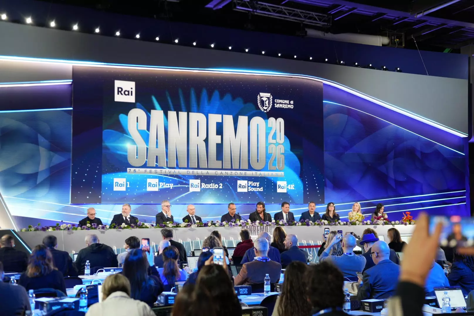 «Per me è un grandissimo piacere. Non posso non segnalarvi la mia gioia nell’aver appreso che il 95% dei cantanti ci ha già detto di si. Mi permetto di invitare anche Laura Pausini. Carlo Conti non lo invito perchè ci sarà comunque. Con me ci sarà Aurore Leone. L’ho scelta di comune accordo con Carlo e ci sarà Federico Basso».