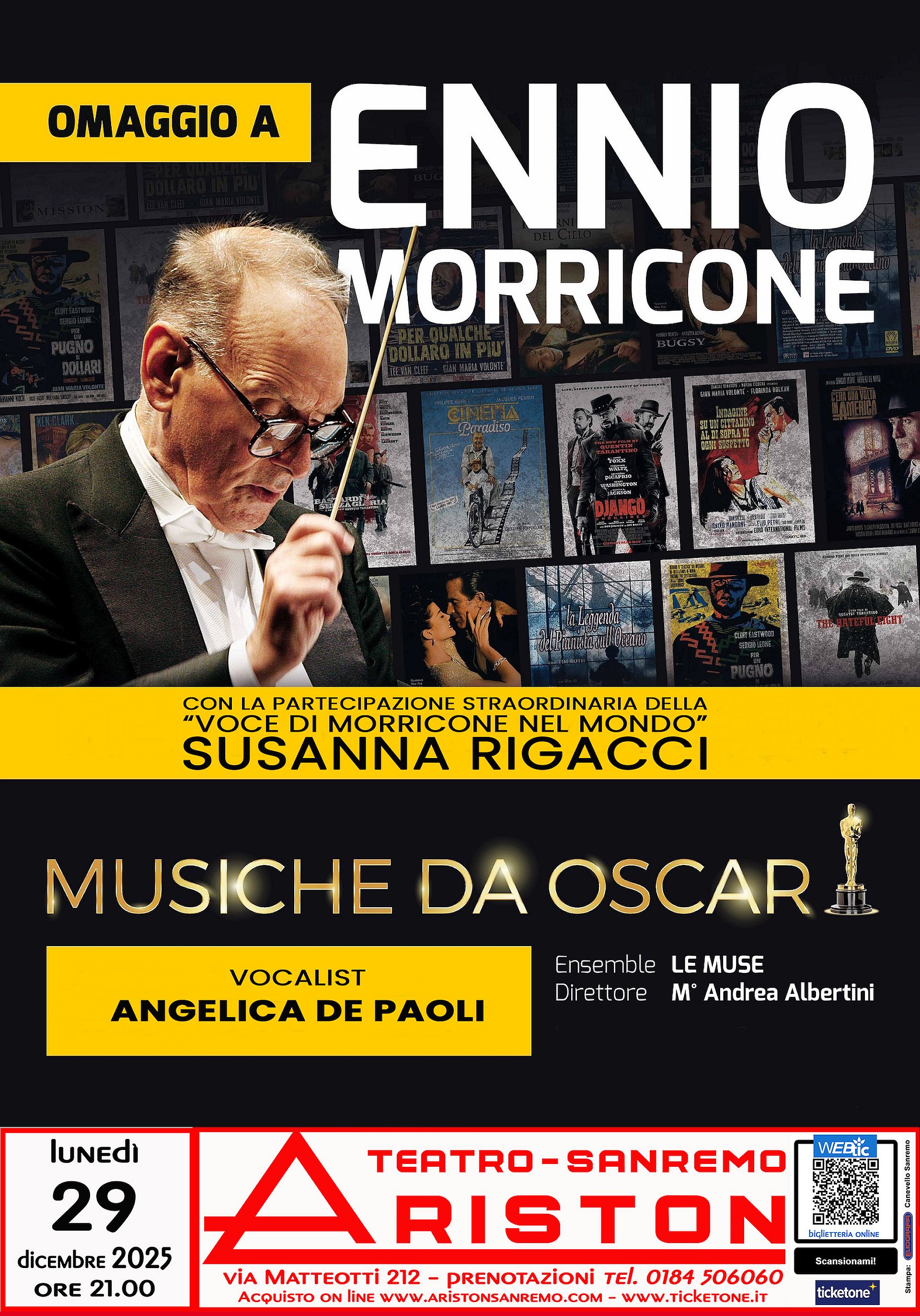 Omaggio al maestro Morricone con la partecipazione di Susanna Rigacci “voce di Morricone nel mondo”, vocalist Angelica De Paoli con l’Ensemble Le Muse dirette dal maestro Andrea Albertini
